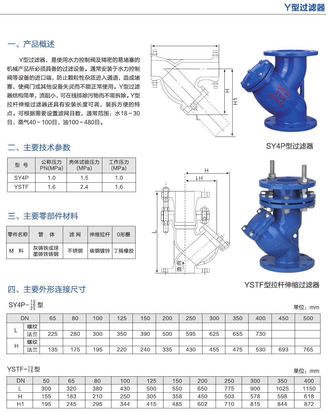 - Y型過濾器,是使用水力控制閥及精密的易堵塞的機械產品所以必須具備的過濾設備。