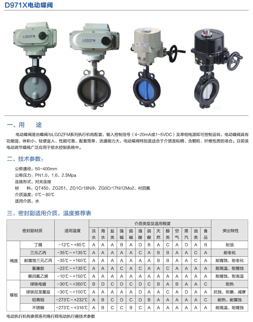 - 電動蝶閥是由蝶閥與LGDZFM系統(tǒng)執(zhí)行機構(gòu)配套,輸入控制信號(4-20mA或1-5VDC)及單相電源即可控制運轉(zhuǎn),電動蝶閥具有功能強、體積小、輕便宜人、性能可靠邊、配套簡單、流通通力大,電動蝶閥特別是適合于介質(zhì)是粘稠、含顆粒、纖維性質(zhì)的場合。