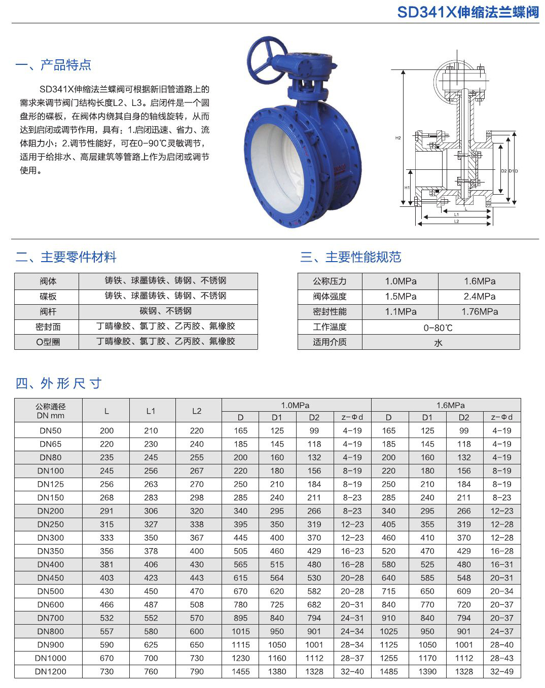 - SD341X伸縮法蘭蝶閥可根據(jù)新舊管道路上的需求來調節(jié)閥門結構長度L2、L3。